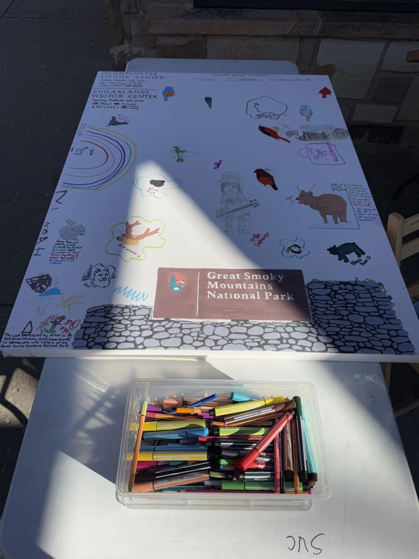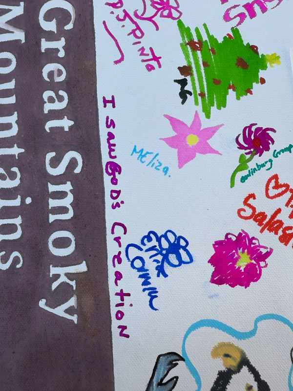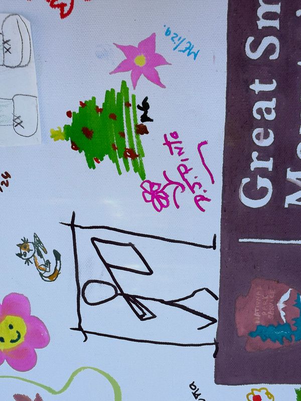 Throughout my residency, I committed to not just creating, but sharing. I hosted self-guided nature journaling sessions and a collaborative art project, where visitors contributed to a collective piece inspired by the park’s beauty. This interactive approach allowed others to slow down, observe, and express their connection to the Smokies through art. Even those who didn't consider themselves "artists" could engage by coloring and adding their own touch to the project.